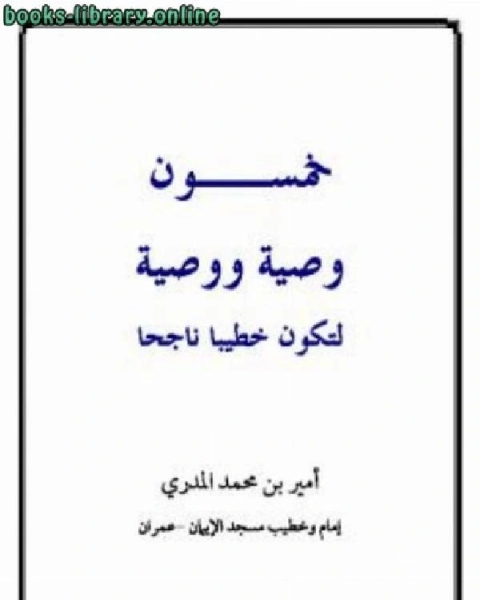 تحميل كتاب خمسون وصية ووصية لتكون خطيباً ناجحاً pdf نبذة عن الكتاب : وقفة مع الخطيب وصفاته، نحاول التعرف على جوانب ثقافته ومصادر أفكاره وأهم المكونات التي تؤثر في إفرازه وإيجاده. .