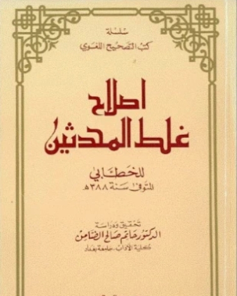 تحميل كتاب إصلاح غلط المحدثين pdf إصلاح غلط المحدثين الخطابي تحقيق: حاتم صالح الضامن. ناشر الكتاب: مؤسسة الرسالة. عدد المجلدات: 1. سنة نشر الكتاب: 1405 - 1985. عدد صفحات الكتاب: 88. رقم الطبعة: 2. حالة الفهرسة: غير مفهرس.