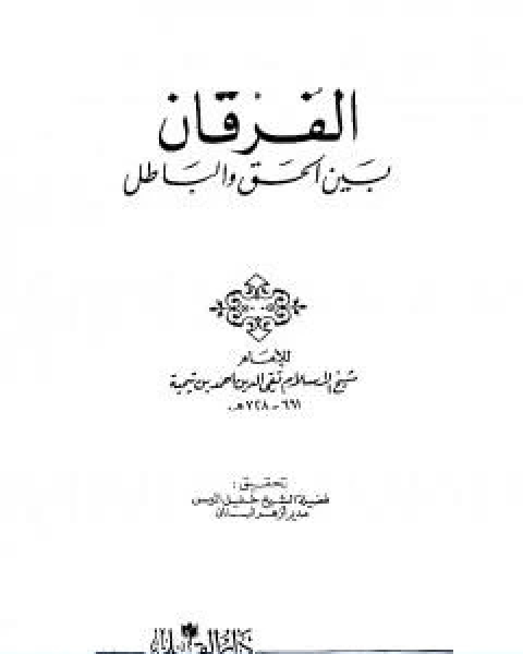 تحميل كتاب الفرقان بين الحق والباطل ت الميس pdf هذا الكتاب من تأليف ابن تيمية و حقوق الكتاب محفوظة لصاحبها