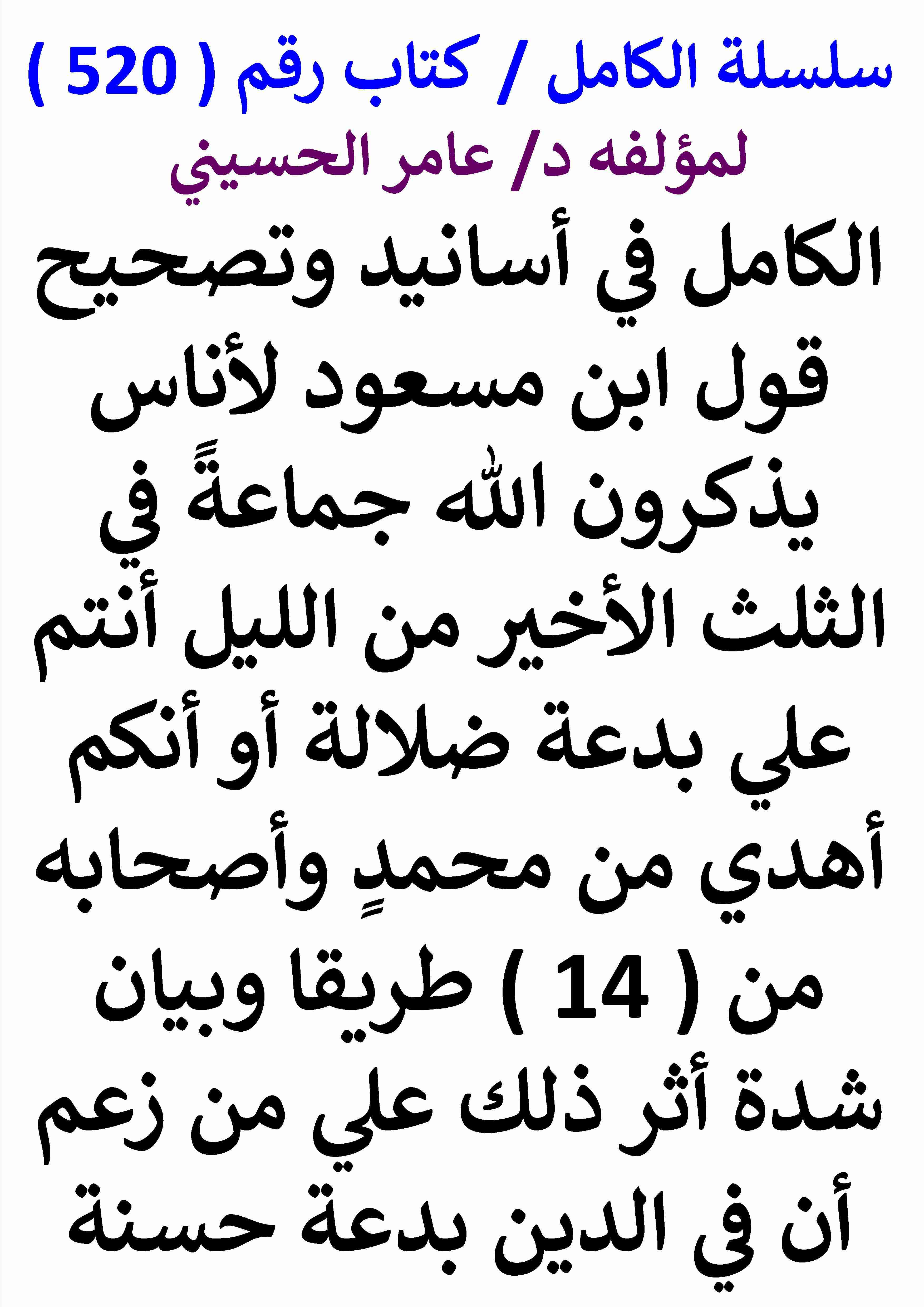الكامل في اسانيد وتصحيح حديث قول ابن مسعود لاناس يذكرون الله جماعة في الثلث الاخير من الليل