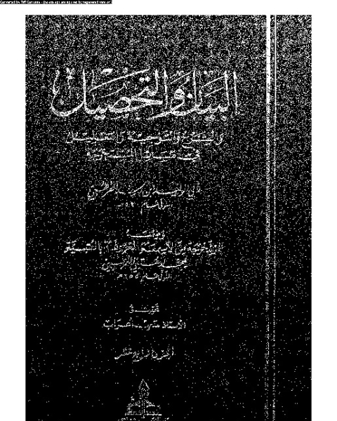 تحميل كتاب البيان والتحصيل وضمنه العتبية - الجزء السادس pdf كتاب في الفقه المالكي ، في اهم الكتب في هذا المجال ، يشرح المستخرجة العتبية في الفقه المالكي ، وهو يعد اوسع كتب المذهب لما يحويه من مسائل نادرة ونقولات هامة عن ائمة المذهب. كتاب: «البيان والتحصيل والشرح والتوجيه والتعليل في مسائل المستخرجة»للقاضي الفقيه أبي الوليد محمد بن أحمد بن رشد ـ الجد ـ القرطبي كتاب حافل من أمّات مصادر الفقه المالكي، وقد عدّه المختصون بيانا شافيا، وتحصيلا كافيا، وشرحا وافيا، وتعليلا لمسائل كتاب «المستخرجة» ـ من أسمعة تلامذة الإمام مالك ـ لمؤلف الراوية الفقيه: محمد بن أحمد العتبي . فهو من أمهات كتب الفقه المالكي ، ومن أهم مراجع توثيق المذهب المالكي ومن أهم مراجع توثيق الرواية لأقوال الإمام مالك. يقول الإمام القرافي في الذخيرة «…مما يدل على أهمية الرجوع إلى الأصل , وهو : البيان والتحصيل»